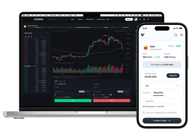 Nommo est la première plateforme digitale au Maroc qui réunit bourse, éducation financière et communauté d’investisseurs, dans une expérience fluide et accessible à tous.
